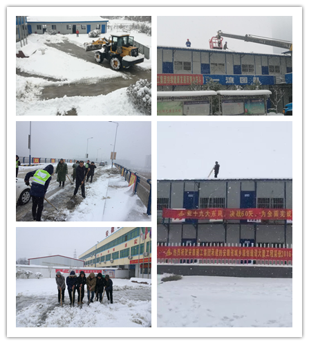 公司所屬各工管部、項目部按照事先準(zhǔn)備的雪天安全生產(chǎn)應(yīng)急預(yù)案,有條不紊開展積雪清掃工作。所屬項目部主要負(fù)責(zé)人親自帶隊、分工負(fù)責(zé),調(diào)動機械設(shè)備,對施工現(xiàn)場道路、項目部辦公區(qū)屋頂積雪等進(jìn)行清掃。大家積極踴躍,不畏嚴(yán)寒,揮舞著鐵鍬和笤帚,你鏟我掃,配合默契。經(jīng)過持續(xù)半天的奮斗,項目人員不僅將項目部積雪清掃干凈,還積極參與了施工路段及街道上的積雪清掃,極大的方便了過往車輛和行人,保障了交通順暢和群眾出行安全,贏得了人民群眾的普遍贊賞。