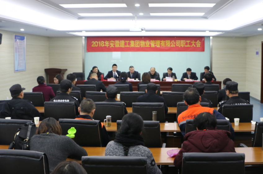 1月21日,安徽建工集團(tuán)物業(yè)管理有限公司在安建大廈召開公司2018年職工大會。安徽建工服務(wù)中心黨總支書記、總經(jīng)理盧躍華同志,安徽建工服務(wù)中心副總經(jīng)理、建工物業(yè)黨支部書記、董事長王金宏同志,總經(jīng)理張振武同志,安徽建工服務(wù)中心工會副主席、綜合部主任徐斌同志等出席會議。