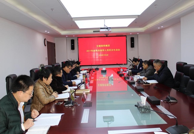 根據(jù)集團(tuán)黨委的統(tǒng)一安排部署,2月6日上午,安徽路橋集團(tuán)召開(kāi)2017年度黨員領(lǐng)導(dǎo)人員民主生活會(huì),公司黨委書(shū)記、董事長(zhǎng)、總經(jīng)理盛明宏主持會(huì)議,公司領(lǐng)導(dǎo)班子成員參加會(huì)議。集團(tuán)紀(jì)委書(shū)記宋志華,紀(jì)委副書(shū)記、監(jiān)察室主任龔志酬及黨委工作部主管陳楠一行到會(huì)指導(dǎo)。