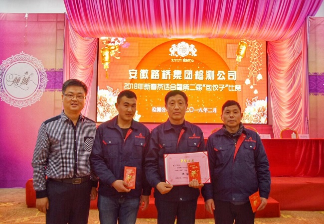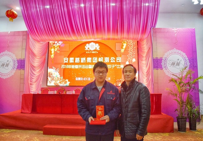 活動現(xiàn)場,安徽路橋集團黨委書記、董事長、總經(jīng)理盛明宏對檢測公司順利舉辦第二屆“包餃子”比賽活動表示祝賀!肯定了檢測公司2017年取得的成績,同時希望檢測公司2018年實現(xiàn)既定目標?!俺晒]有奇跡,成功只有軌跡”,希望檢測公司朝著“名副其實、譽滿江淮”的方向奮斗,2018年會更好!