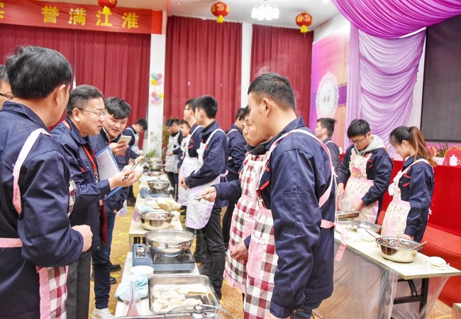 本次“包餃子”比賽由檢測公司各項目試驗室選拔人員組隊參賽,比賽分為個人賽和團體賽,共九支代表隊27人參賽。裁判組根據(jù)參賽選手包餃子數(shù)量、質(zhì)量、大小均勻度、美觀程度、煮后餃子的口感等進行綜合評判。