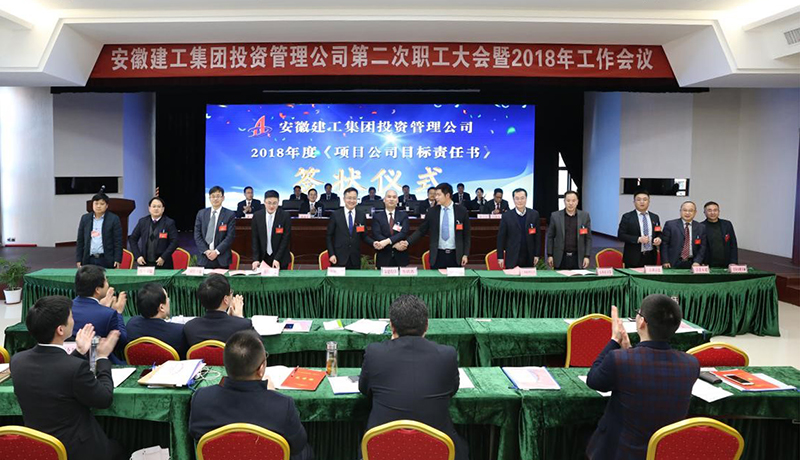會(huì)議在高亢嘹亮的《安徽建工之歌》聲中正式開(kāi)始。大會(huì)聽(tīng)取并審議通過(guò)了公司《總經(jīng)理工作報(bào)告》、《財(cái)務(wù)工作報(bào)告》。會(huì)議表彰了2017年度公司先進(jìn)集體、先進(jìn)個(gè)人,簽訂了2018年基層黨支部目標(biāo)管理責(zé)任書(shū)、2018年公司經(jīng)濟(jì)責(zé)任書(shū)和安全生產(chǎn)責(zé)任書(shū)。