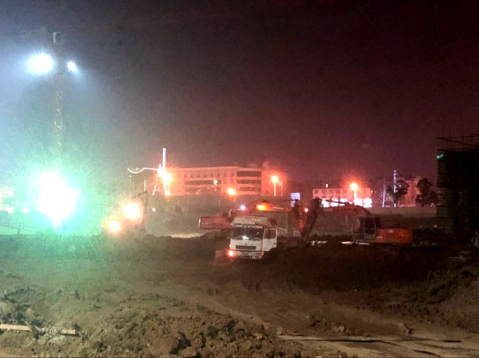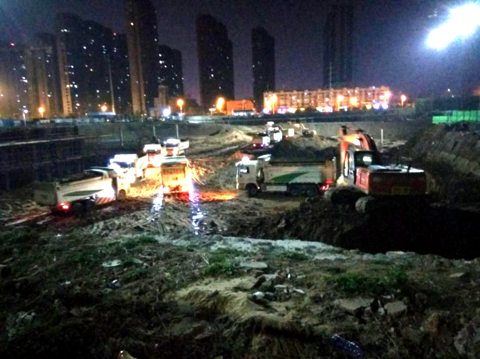 為確保安全文明生產(chǎn),針對(duì)項(xiàng)目施工現(xiàn)場(chǎng),全面開(kāi)展安全巡查、排查工作,全力確?;咏邓?、邊坡支護(hù)、臨時(shí)用電、腳手架等重點(diǎn)部位無(wú)安全隱患。在施工現(xiàn)場(chǎng)配備足夠的照明設(shè)備以滿足挖機(jī)、渣土車(chē)、塔吊等機(jī)械設(shè)備夜間作業(yè),并設(shè)專(zhuān)職安全員執(zhí)勤。