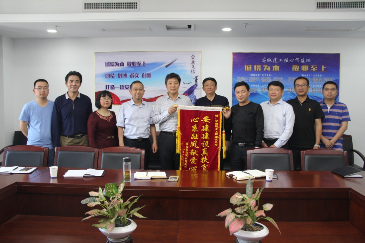 5月3日上午,宿松縣趾鳳鄉(xiāng)黨委委員、武裝部吳部長(zhǎng),趾鳳村黨總支王書記、村民委員會(huì)梅主任,派村扶貧工作隊(duì)第一書記鄭軍等一行5人回訪安建建設(shè),感謝安建建設(shè)對(duì)其扶貧工作的支持,并送上錦旗。