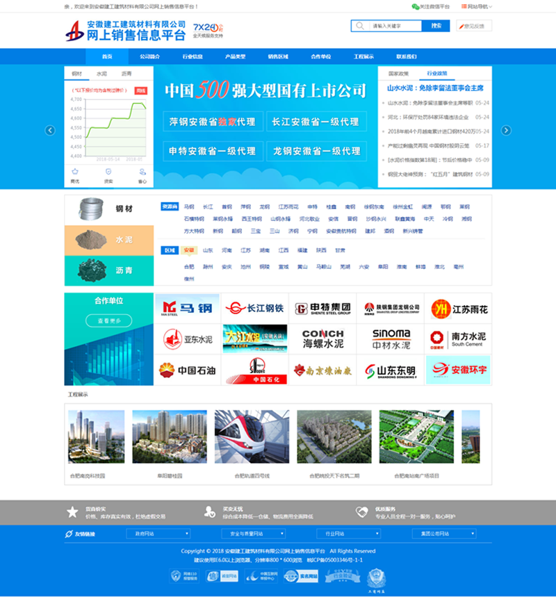 安建建材公司網(wǎng)上銷售信息平臺(tái)較為系統(tǒng)的向用戶介紹了安建建材的基本情況,三大主材(鋼材、水泥、瀝青)的可供優(yōu)勢(shì)資源情況、業(yè)務(wù)輻射區(qū)域情況、各區(qū)域負(fù)責(zé)對(duì)接人員情況以及工程業(yè)績(jī)等。用戶可以通過“資源條件”、“區(qū)域條件”、“板塊地圖”快速檢索到自己想采購(gòu)的主材產(chǎn)品,并獲取相關(guān)購(gòu)買信息,省時(shí)省力省心,大大優(yōu)化了資源供應(yīng)者與采購(gòu)者之間的溝通渠道,拓寬了主材銷售路徑。