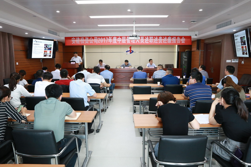 5月24日,安建投資公司召開2017年度中層管理人員述職述責述廉報告會。公司領導班子成員、所屬各項目公司主要負責人、考核對象、機關全體員工、職工代表等40余人參加會議。會議同時對公司中層后備干部人選進行了推薦。