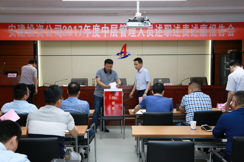 會上,公司機關中層正職及主持工作中層副職、所屬各項目公司主要負責人等8名同志進行了口頭述職,4名中層副職提交了書面述職報告。全體中層干部結合考核內容從德能勤績廉等方面進行匯報,深入總結2017年工作,并對工作中存在的不足進行了深刻的反思,提出解決措施,同時對2018年工作作出了具體安排。述職完成后,與會人員以無記名的方式公正投票,對述職人員2017年度工作開展情況進行了民主測評。