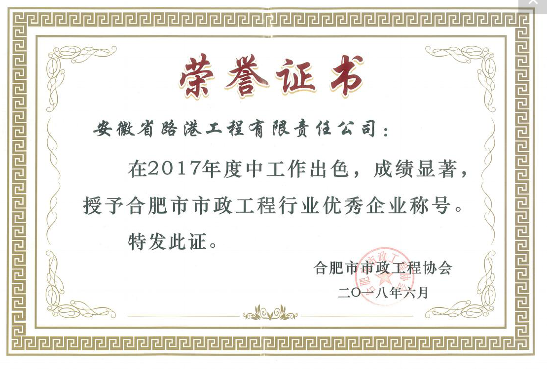 近日,安徽路港公司被合肥市市政工程協(xié)會(huì)授予“2017年度合肥市市政工程行業(yè)優(yōu)秀企業(yè)”榮譽(yù)稱號,邢磊、張幫偉兩位同志被授予“合肥市市政工程行業(yè)優(yōu)秀項(xiàng)目經(jīng)理”榮譽(yù)稱號。