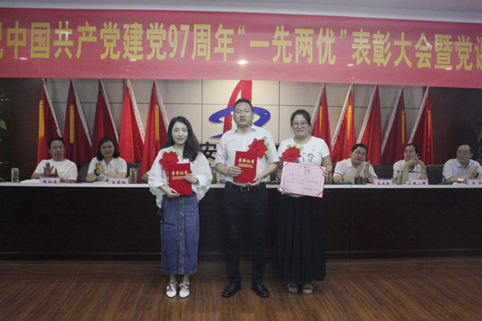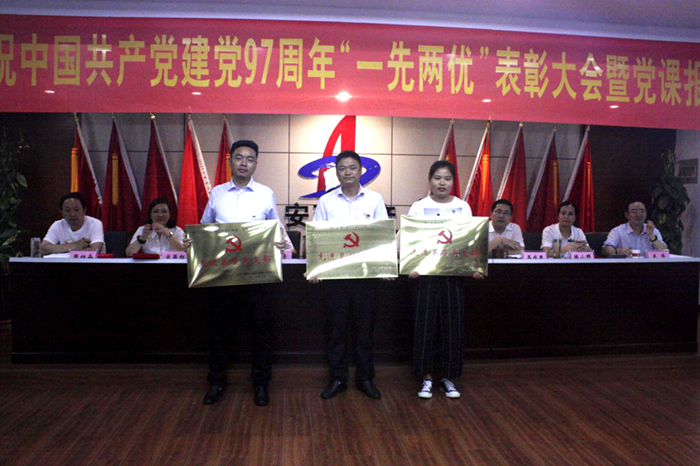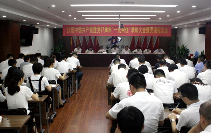 為紀(jì)念建黨97周年,全面深入學(xué)習(xí)貫徹習(xí)近平新時(shí)代中國特色社會主義思想及黨的十九大精神,進(jìn)一步激勵(lì)動員廣大黨員干部樹牢“四個(gè)意識”堅(jiān)定“四個(gè)自信”,立足崗位,奮發(fā)進(jìn)取,7月1日,安建地產(chǎn)在安建國際大廈21樓會議室召開慶祝建黨97周年“一先兩優(yōu)”表彰大會暨黨課報(bào)告會。公司領(lǐng)導(dǎo)班子成員,所屬各單位班子成員、黨群部負(fù)責(zé)人,各支部委員,機(jī)關(guān)黨支部全體黨員,“七一”受表彰人員參加會議。