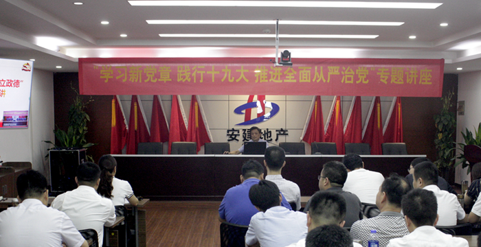為深入學(xué)習(xí)貫徹黨的十九大精神,結(jié)合正在開展的“講忠誠(chéng)、嚴(yán)紀(jì)律、立政德”專題警示教育,7月2日,安建地產(chǎn)在安建國(guó)際大廈21樓會(huì)議室舉辦了“學(xué)習(xí)新黨章 踐行十九大 推進(jìn)全面從嚴(yán)治黨”專題培訓(xùn)班,公司領(lǐng)導(dǎo)班子成員、所屬各單位班子成員、黨群部負(fù)責(zé)人,各支部委員,機(jī)關(guān)黨支部全體黨員,“七一”受表彰人員參加培訓(xùn)。培訓(xùn)班邀請(qǐng)中共安徽省委黨校黨史黨建部副主任、教授吳梅芳,安徽建工集團(tuán)黨委委員、紀(jì)委書記宋志華授課。