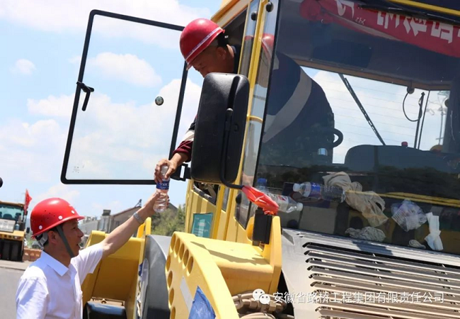盛董事長向正在作業(yè)的職工表達親切關懷與問候,并將綠豆、紅糖、十滴水、風油精、藿香正氣口服液等防暑降溫慰問品親自送到一線職工手中。在慰問調研途中,盛董事長聽取了分公司關于當前工程項目建設、夏季防暑降溫工作開展情況的匯報,詳細了解一線職工的生產生活情況,認真聽取一線職工的意見和建議。就下一階段工作,盛董事長強調:一是加強項目管理,針對夏季施工特點,合理安排施工,確保廣德片區(qū)各項目安全可控、進度可控、質量可控,為完成工期目標和年度目標打牢基礎,向集團和廣德縣人民交上一份滿意的答卷。二是切實做好防暑降溫各項工作,項目部要合理安排作息時間,加強后勤保障和應急措施,保證高溫作業(yè)條件下一線職工的安全和健康。