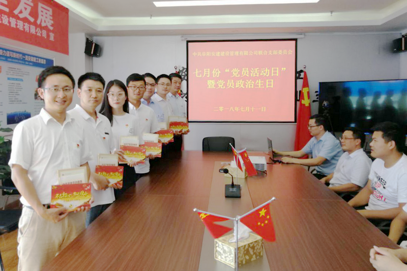 公司于7月1日慶祝建黨97周年之際,為公司6月及7月入黨的黨員開展集體“政治生日”活動,通過贈送生日賀卡、黨建書籍,重溫入黨誓詞等形式,深入強化黨員的身份意識和責任意識,加強黨員黨性教育。為固化活動成果,公司制定印發(fā)了《安建投資公司黨總支關于開展共產(chǎn)黨員“政治生日”活動的實施方案》,規(guī)定所屬各黨支部通過扎實開展“七個一”活動,即:建立一本黨員“政治生日”臺賬、重溫一次入黨誓詞、贈送一份政治生日禮物、進行一次談心談話、開展一次學習教育活動、辦一件有意義的實事、提一條合理化建議,進一步激發(fā)黨員的政治熱情,增強黨員的責任感和使命感。