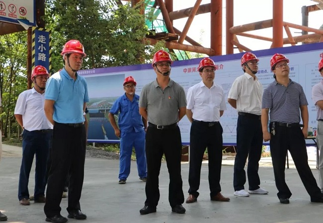 7月31日上午,江西省交通運(yùn)輸廳副廳長(zhǎng)王昭春在公司黨委副書記、董事、總經(jīng)理歐陽志宜、三分公司黨總支書記、總經(jīng)理鮑建新的陪同下,蒞臨合安改擴(kuò)建01標(biāo)中派河特大橋現(xiàn)場(chǎng)參觀考察。