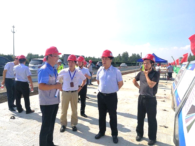 8月2日下午,省交控集團(tuán)黨委書(shū)記、董事長(zhǎng)喬傳福蒞臨安徽路港合安高速改擴(kuò)建02標(biāo)項(xiàng)目檢查指導(dǎo)工作,省交控集團(tuán)建管部部長(zhǎng)蘇新國(guó)、項(xiàng)目辦主任吳建民、副主任鄧陳記、安徽路港副總經(jīng)理錢(qián)玉寶等陪同。