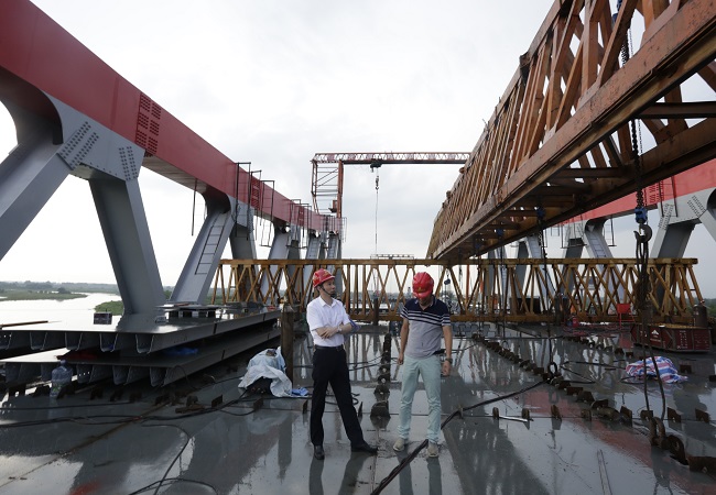 隨后,在項(xiàng)目負(fù)責(zé)人的陪同下,盛董事長(zhǎng)登上中派河大橋,查看大橋建設(shè)情況。項(xiàng)目負(fù)責(zé)人匯報(bào)了中派河大橋當(dāng)前工程進(jìn)度、質(zhì)量、安全管理、技術(shù)創(chuàng)新以及下一階段工作計(jì)劃。在聽(tīng)取匯報(bào)后,盛董事長(zhǎng)表示,中派河大橋使用了大量新工藝、新技術(shù)、新材料,社會(huì)影響力大,各界關(guān)注度高,項(xiàng)目部一定要緊抓質(zhì)量、安全不放松,同時(shí)注重技術(shù)創(chuàng)新、經(jīng)驗(yàn)總結(jié)、綠色環(huán)保,把中派河大橋打造成為行業(yè)內(nèi)的精品工程,內(nèi)強(qiáng)素質(zhì)、外樹(shù)品牌,為路橋集團(tuán)增光添彩。