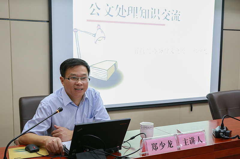 為提高從業(yè)人員的公文處理及寫作水平,會議還邀請到了國務院辦公廳秘書一局文電處副處長、安徽省政府辦公廳文電處副處長鄭少龍為與會人員授課。他就公文處理的原則及程序、公文種類及其之間的區(qū)別、公文的格式、行文規(guī)則及公文審核常見問題等進行了深入的講解,并結合大量事例,重點介紹了請示、通知、通報等文種的寫作方法。