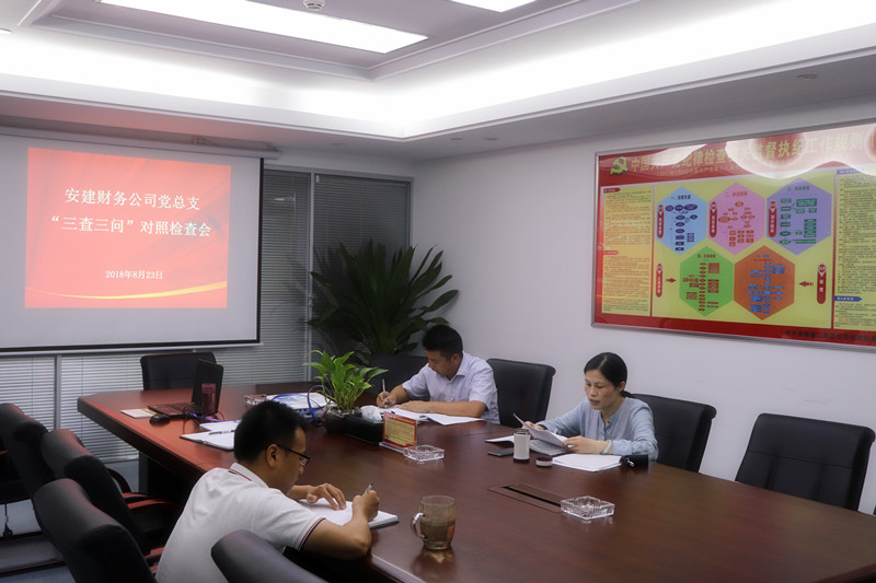 8月23日下午,安建財(cái)務(wù)公司黨總支召開“三查三問”對照檢查會議,公司黨員領(lǐng)導(dǎo)班子成員參加,黨總支書記潘琳主持會議。
