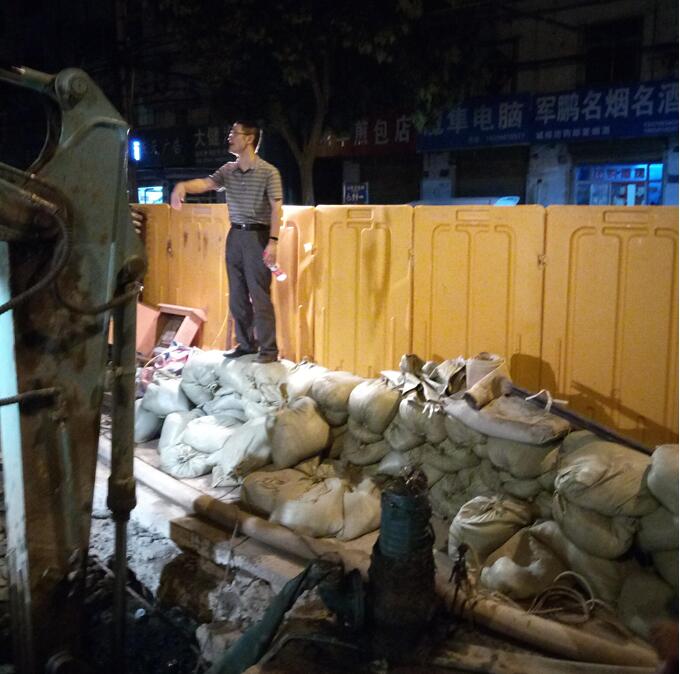 當晚,方總主持召開項目難點-惠黎路的過路箱涵破除部署會議?;堇杪愤^路箱涵是上世紀毛石砌筑的城市主排水涵,箱涵深度超過3米,截面、水流量較大,年久失修且地下情況復雜。剛過交通晚高峰時段后,按計劃對惠黎路進行封閉,投入機械設備和施工管理人員有序開展工作。方總一行現場指揮施工,對作業(yè)各節(jié)點、各部位、各區(qū)域統(tǒng)一部署,特別是對施工風險點予以一一排查和應急準備,對“水管破裂、沼氣泄漏、交通擁堵”重大風險點安排專項小組預防。方總身先士卒、邵總表率先行、項目部全體人員團結奮戰(zhàn),終于克服了箱涵年久失修、涵內淤泥量大、毛石塊松散、沼氣侵蝕等一個個施工難點,終于在9月5日凌晨5點完成分部主體施工,道路恢復通車。