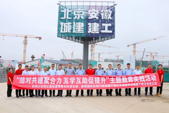 近日,安徽建工和北京城建合肥新橋國際機場T2航站樓工程項目黨支部同機場公安局交通巡邏警察支隊黨支部開展“結(jié)對共建聚合力 互學互助促提升”主題教育實踐活動。