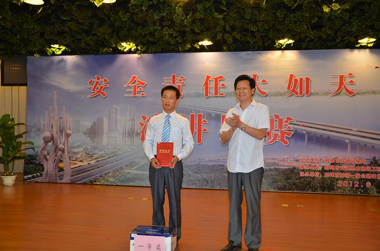 6月19日,安徽水利蚌埠公司組織員工參加蚌埠市交通運(yùn)輸局組織的“安全責(zé)任大如天” 主題演講比賽榮獲第一名。省質(zhì)監(jiān)局及蚌埠市多家單位領(lǐng)導(dǎo)、電視臺記者等近160人,現(xiàn)場聆聽了孫文明的精彩演講。